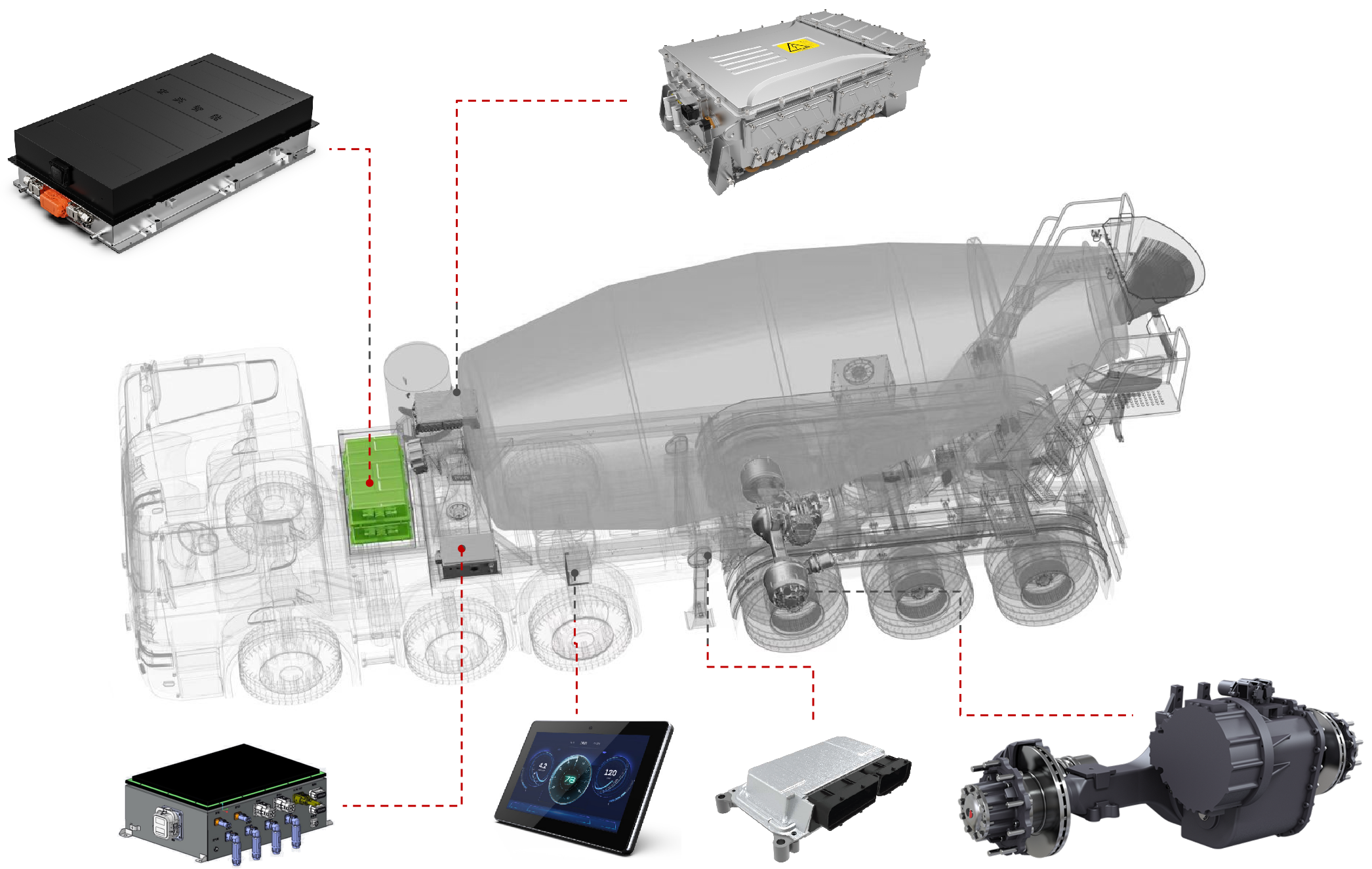 聯(lián)合研發(fā)的混合動力牽引攪拌半掛車,以其開創(chuàng)性的頭掛一體智能驅(qū)動技術(shù),開辟了綠色高效商砼運輸?shù)男绿斓亍K闪讼冗M的混合動力技術(shù),實現(xiàn)了混凝土攪拌運輸車產(chǎn)品高效能、低排放、輕量化、智能化的目標,引領(lǐng)混凝土行業(yè)對高品質(zhì)攪拌運輸車的需求。